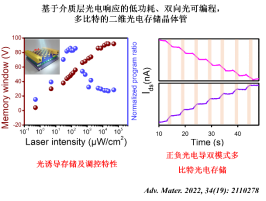 (9) Haojie Lai, Yang Zhou, et al., Photoinduced multi‐bit nonvolatile memory based on a van der Waals heterostructure with a 2D‐perovskite floating gate, Advanced Materials, 2022, 34(19): 2110278.