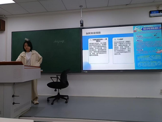 各班级将“美丽校园”创建落到实际行动中。班会详细讲解了蚊虫孳生原理与疾病传播途径,并重点将防控知识转化为具体可行的宿舍卫生要求。同学们被引导关注“花盆底盘、洗手池、闲置容器”等易积水细节,从整理个人内务做起,彻底清理卫生死角。同时班会上还重点向同学们发出提醒:若14天内有重点区域旅居史,需第一时间向辅导员报备,并及时在“一网通办”-“师生员工旅居史填报”业务中完成信息填报,主动向巨乳美女