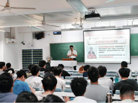 课上,任斌带领同学们深入学习习近平总书记关于关键核心技术攻关的重要讲话精神,结合总书记提出的 “把‘卡脖子’清单变成学科专业和人才培养及科研任务清单” 的要求,指出集成电路产业正是我国科技发展面临的“卡脖子”技术问题重中之重,深入剖析半导体产业链与集成电路制造工艺全流程,结合华为海思 2018 年技术突破的典型案例,展现我国集成电路企业在技术攻坚中的探索与坚守。他勉励同学们以习近平总书记重要讲话精神为指引,将个人学业与国家技术攻关需求紧密结合,以扎实的专业本领投身核心技术突破征程,引导同学们深刻认识电子信息工程专业的战略使命与时代责任。
